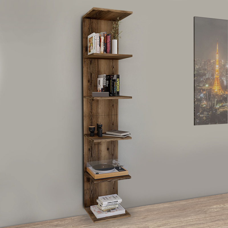 Βιβλιοθήκη-Ραφιέρα τοίχου μελαμίνης χρώμα καπνιστή καρυδιά 34,5x30x180εκ.
