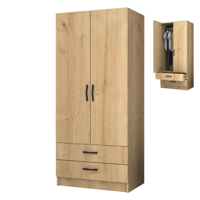 Ντουλάπα ρούχων δίφυλλη χρώμα φυσικό οξιάς 80x51,8x181εκ.