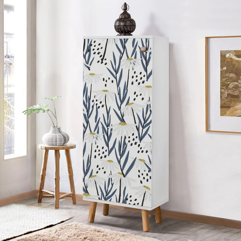 Ντουλάπι κουζίνας/μπάνιου-Παπουτσοθήκη Χρώμα Λευκό με Σχέδιο 50x38x135εκ.