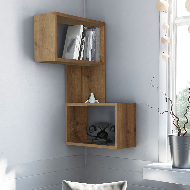 Ραφιέρα τοίχου γωνιακή μελαμίνης χρώμα ανοιχτό καρυδί 47x20x82εκ.