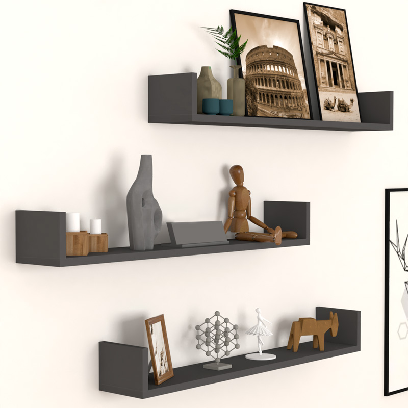 Ραφιέρα τοίχου 3 τεμαχίων από μελαμίνη χρώμα ανθρακί 90x15x12εκ.