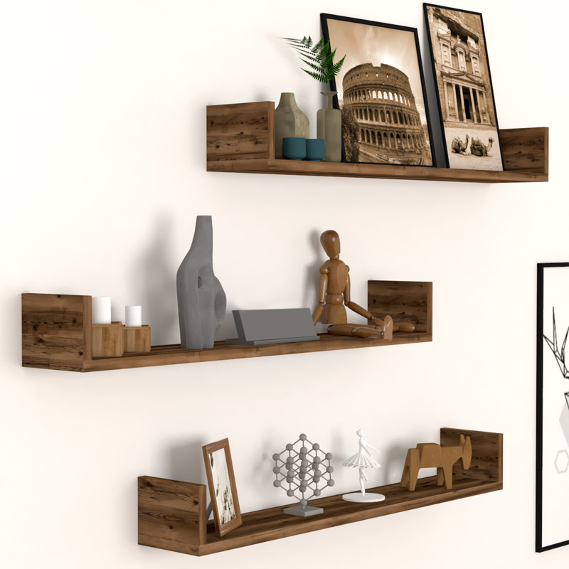 Ραφιέρα τοίχου 3 τεμαχίων από μελαμίνη χρώμα πεύκου βελανιδιάς 90x15x12εκ.