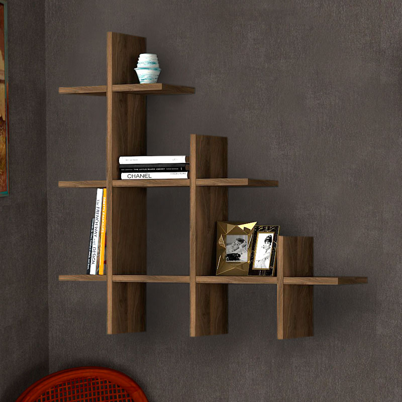 Ραφιέρα τοίχου από μελαμίνη χρώμα καρυδί 81,8x18x80εκ.