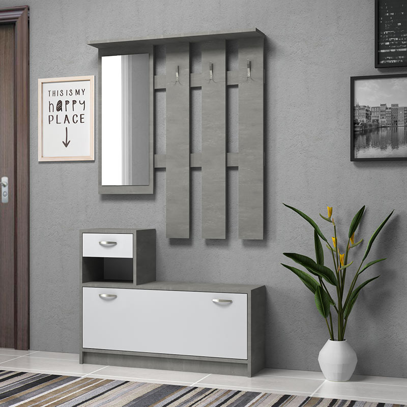 Έπιπλο εισόδου χρώμα Γκρι και Λευκό 100x30x180εκ.