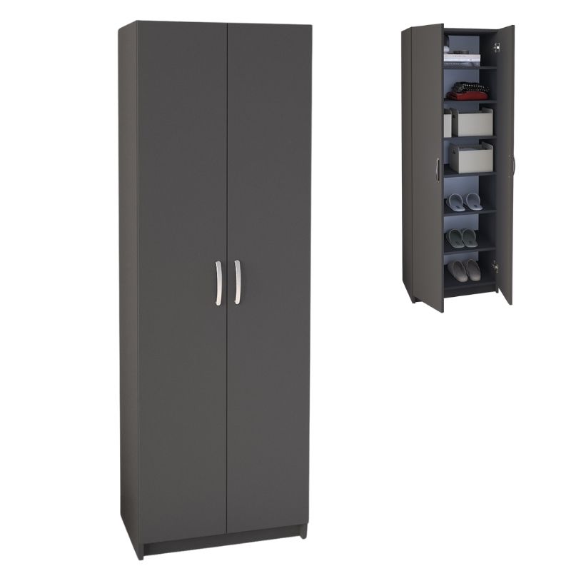 Ντουλάπα ρούχων- Παπουτσοθήκη 2φυλλη χρώμα Ανθρακί 60x38x179εκ.
