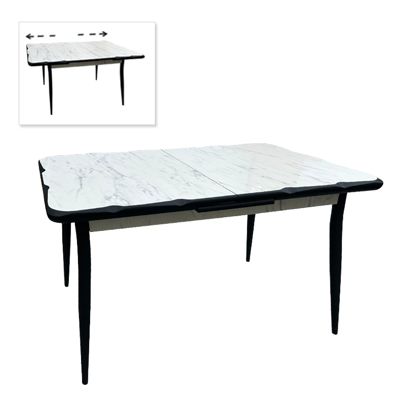 Τραπέζι επεκτεινόμενο χρώμα λευκό εφέ μαρμάρου-μαύρο 130/160x80x75εκ.