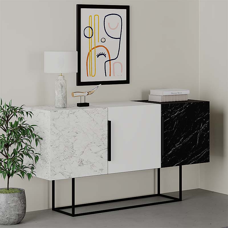 Μπουφές μελαμίνης χρώμα λευκό-μαύρο εφέ μαρμάρου 150x42x79,5εκ.