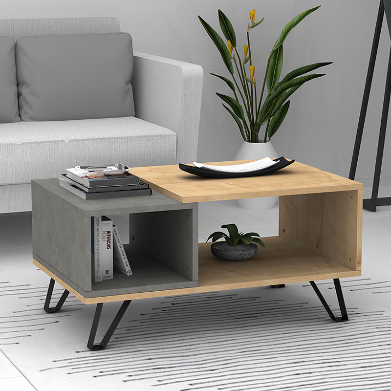 Τραπεζάκι Σαλονιού χρώμα Ζαφειρί Βελανιδιά - Ανθρακί 90x45εκ.