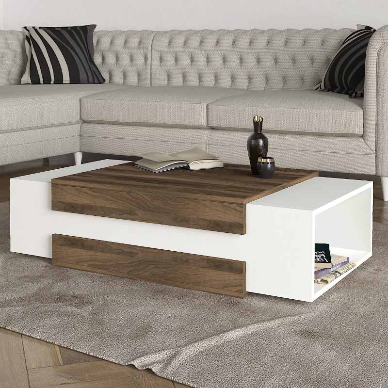 Τραπεζάκι Σαλονιού χρώμα Δίχρωμο Λευκό-Καρυδί 110x60εκ.