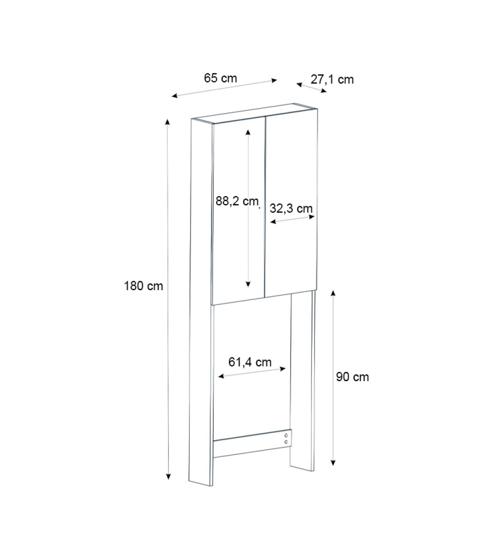 - Διαστάσεις: Μήκος 65 x Βάθος 27,1 x Ύψος 180 εκ.