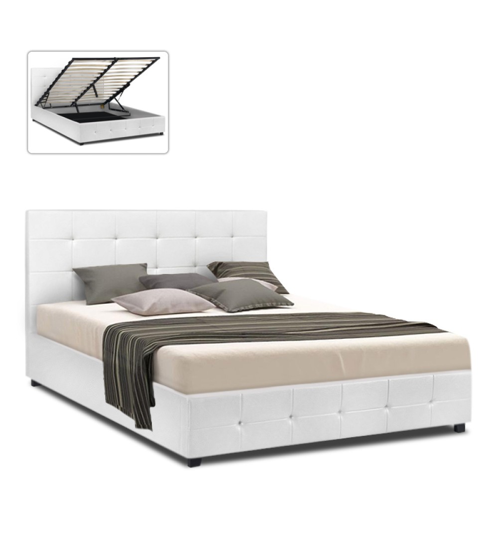 Κρεβάτι Διπλό τεχνόδερμα Λευκό με αποθηκευτικό χώρο (εισαγωγής)
