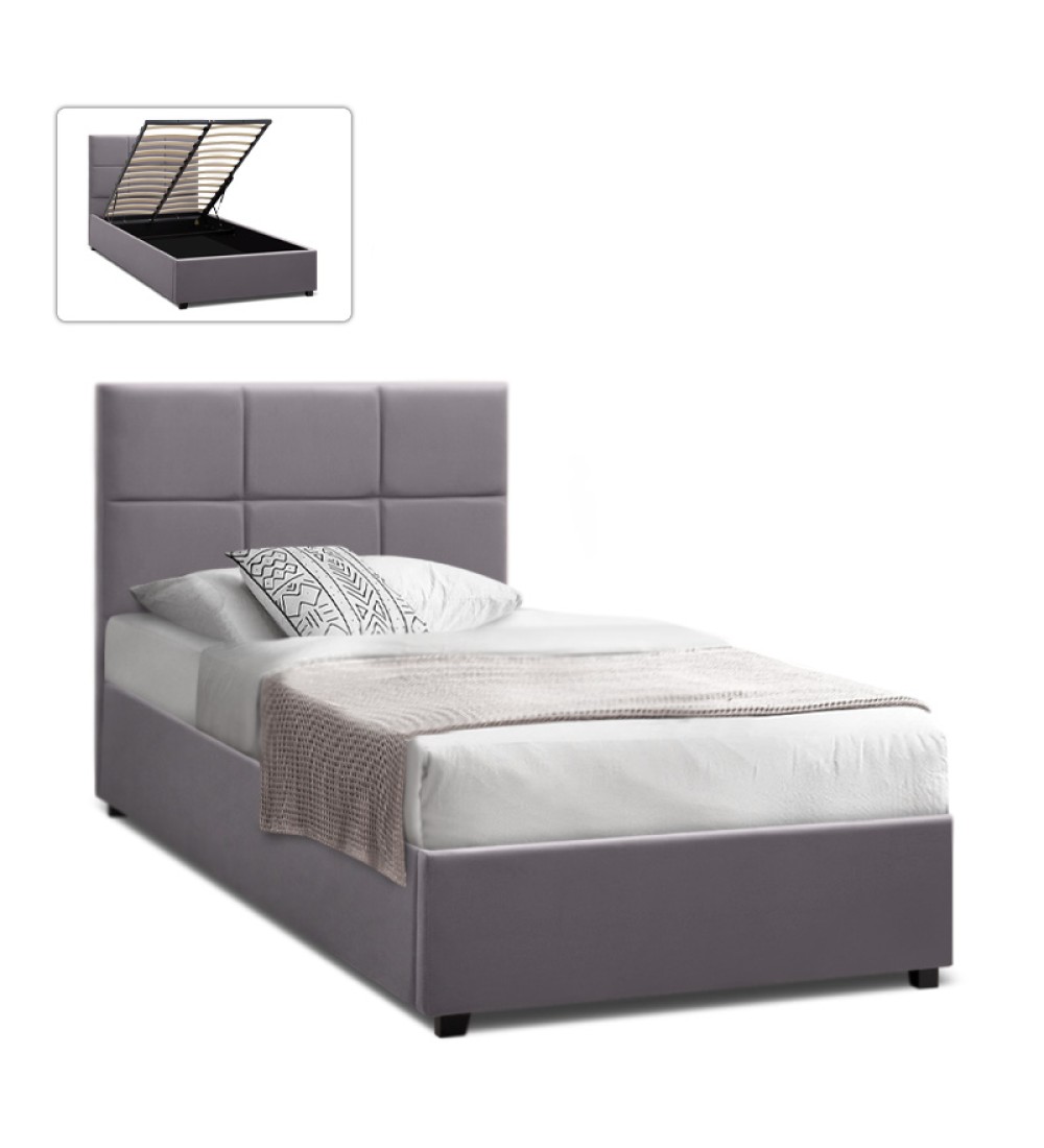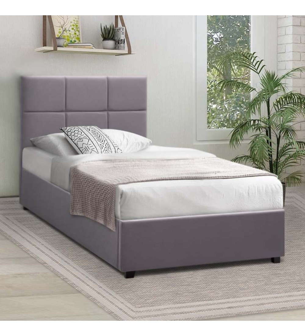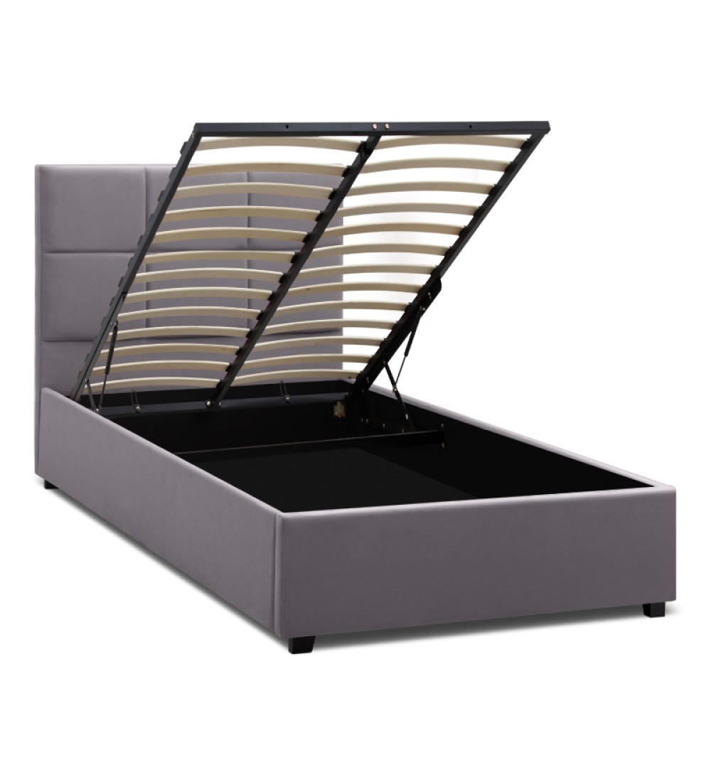 Κρεβάτι βελούδινο με αποθηκευτικό χώρο χρώμα γκρι 100x200εκ. (εισαγωγής)