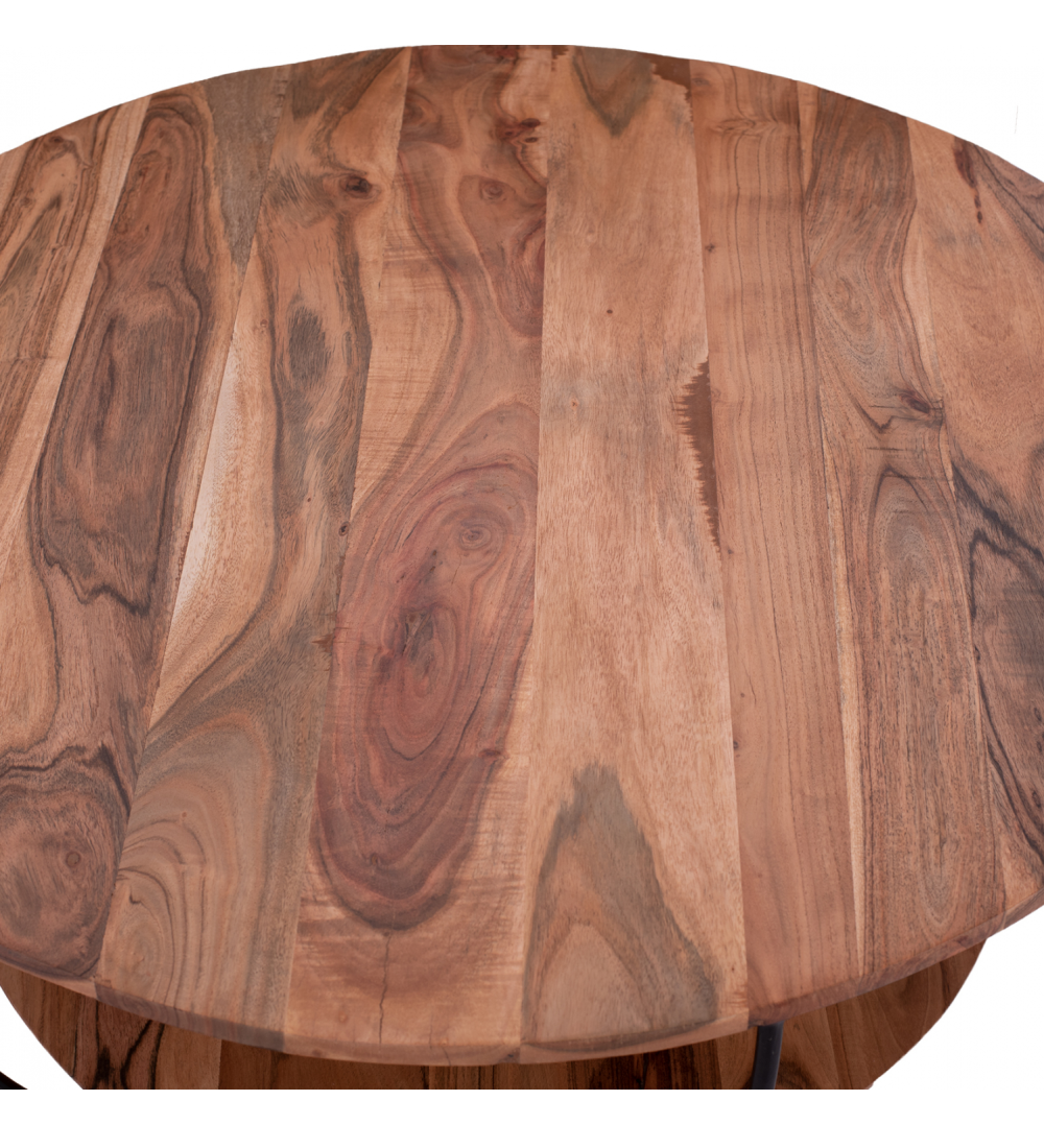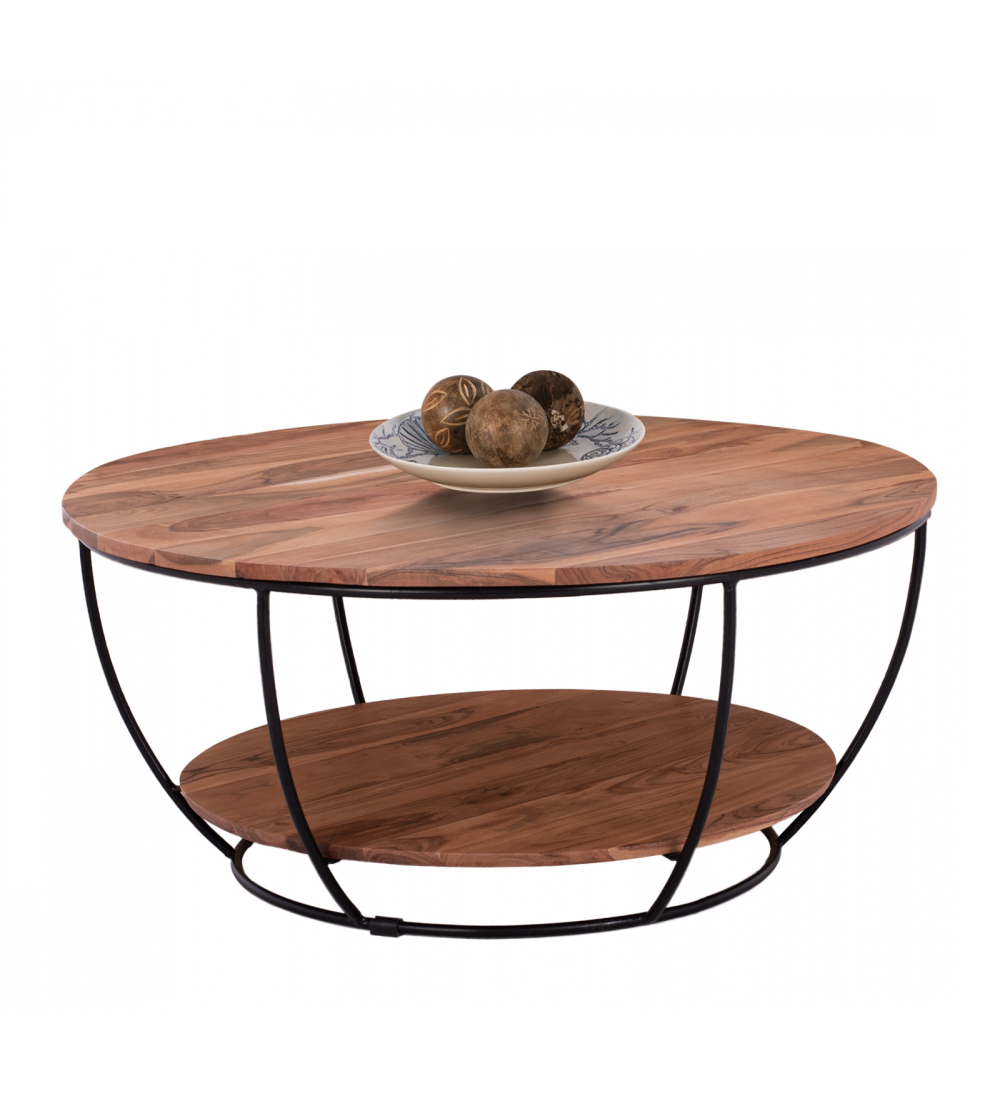 Τραπεζάκι σαλονιού Στρογγυλό με φυσικό ξύλο ακακίας και σκελετό μεταλλικό μαύρο σε 2 επίπεδα,