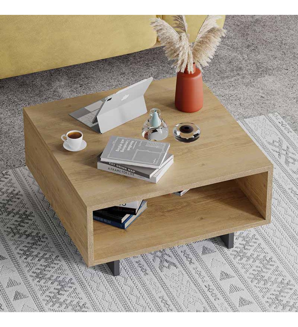Τραπεζάκι σαλονιού Φυσικό οξιάς- Ανθρακί 60x60x32εκ. (εισαγωγής)