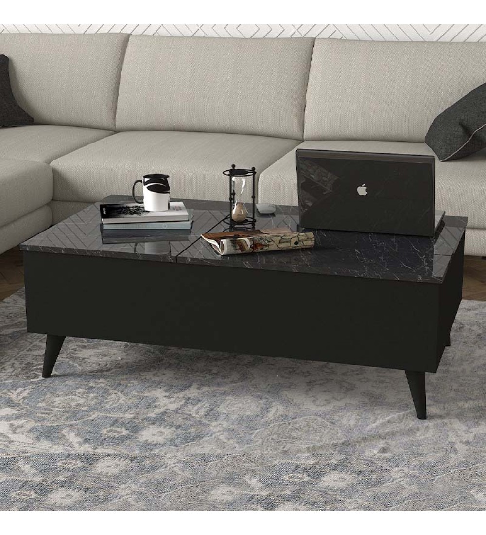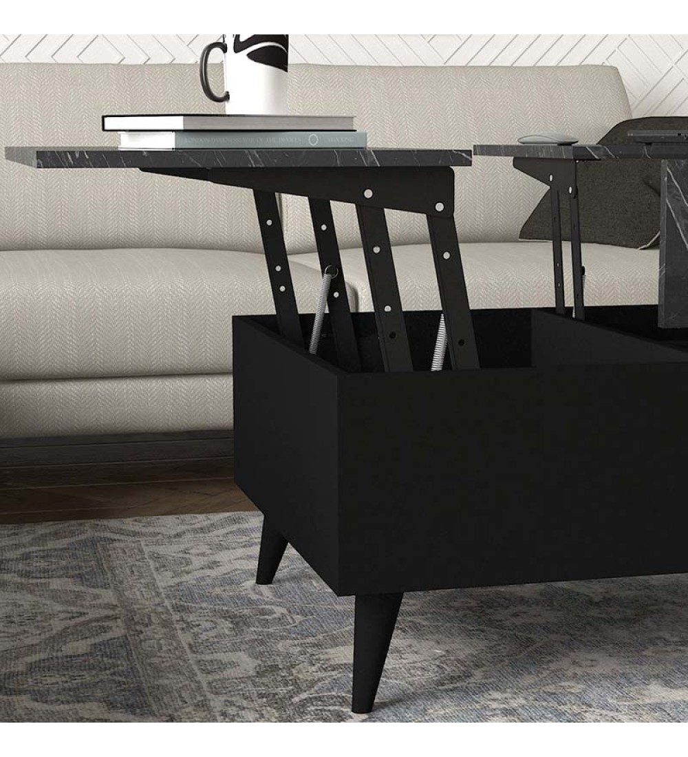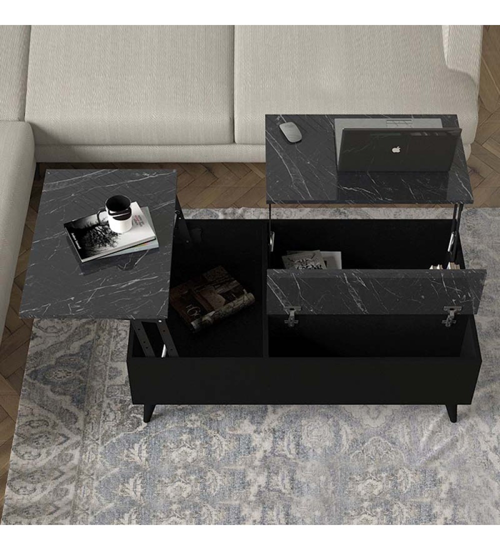 Τραπεζάκι σαλονιού με Σερβιτόρο Μαύρο Εφέ Μαρμάρου 121x69εκ. (εισαγωγής)