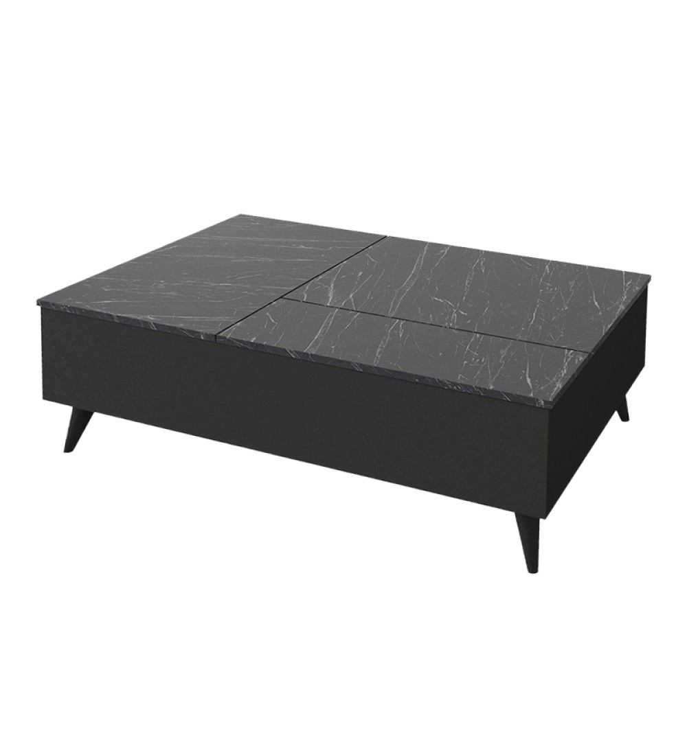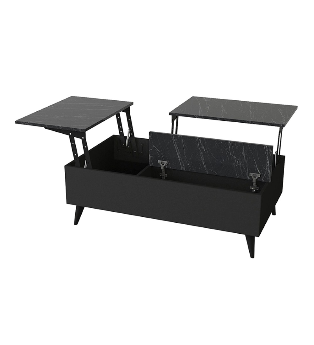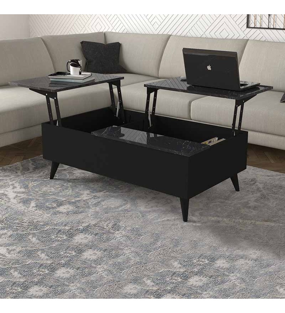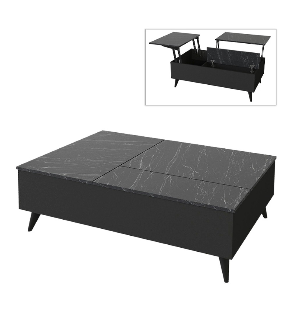 Τραπεζάκι σαλονιού με Σερβιτόρο Μαύρο Εφέ Μαρμάρου 121x69εκ. (εισαγωγής)