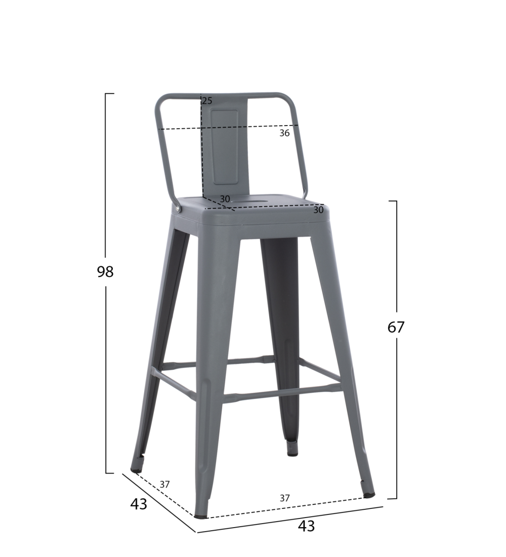 Σκαμπό Bar Γκρι με Πλάτη Μεταλλικό μεσαίου ύψους, κατασκευασμένο από μεταλλικό σκελετό εξαιρετικής αντοχής, διαθέτει επίσης