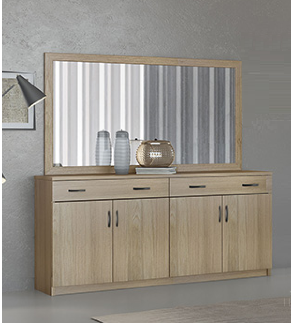 Μπουφέ με καθρέπτη Νο 1 Λάττε απόχρωση (Ελληνικής κατασκευής) με ντουλάπια (4) και πάνω (2) συρτάρια.