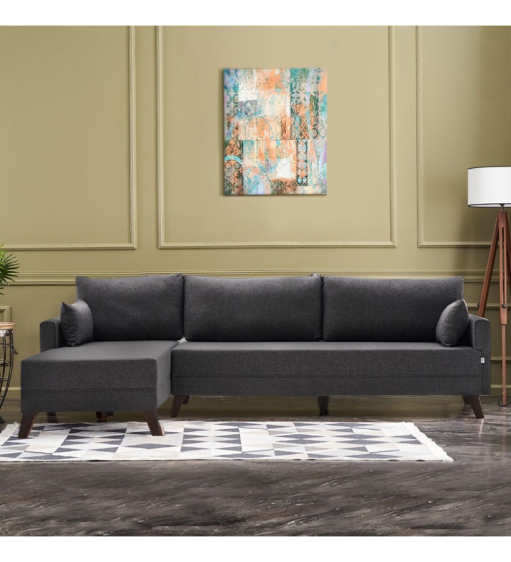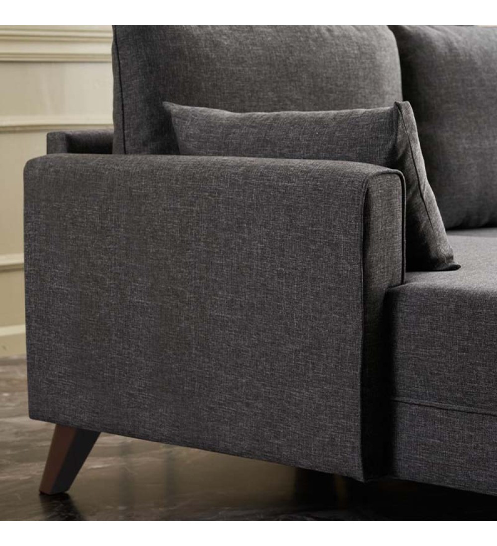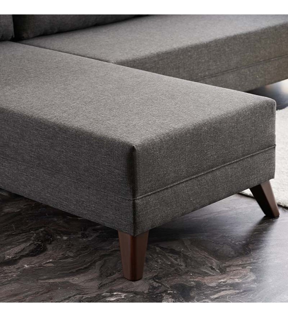 - Φέρει πόδια από πολυπροπυλένιο, ειδικά σχεδιασμένο για καναπέδες, με ξύλινη εμφάνιση σε καρυδί χρώμα.
