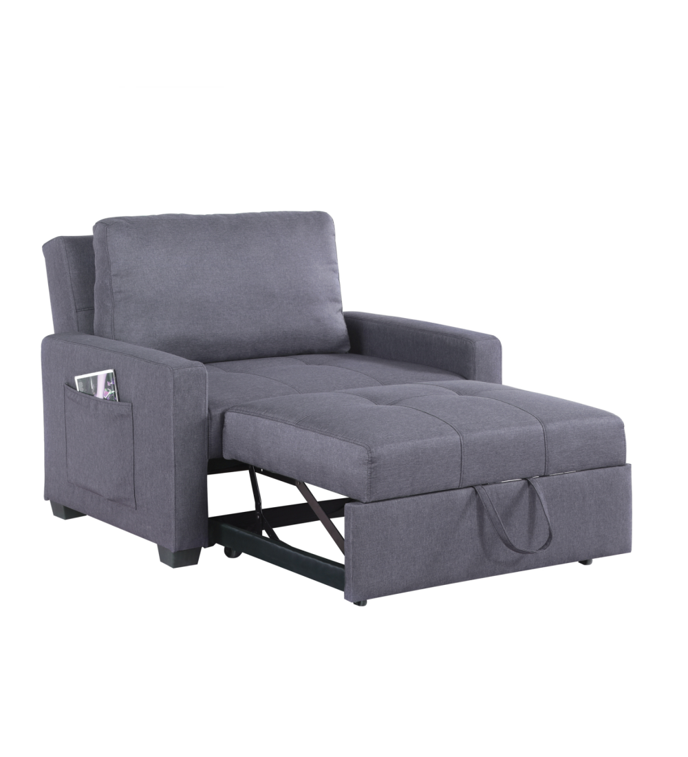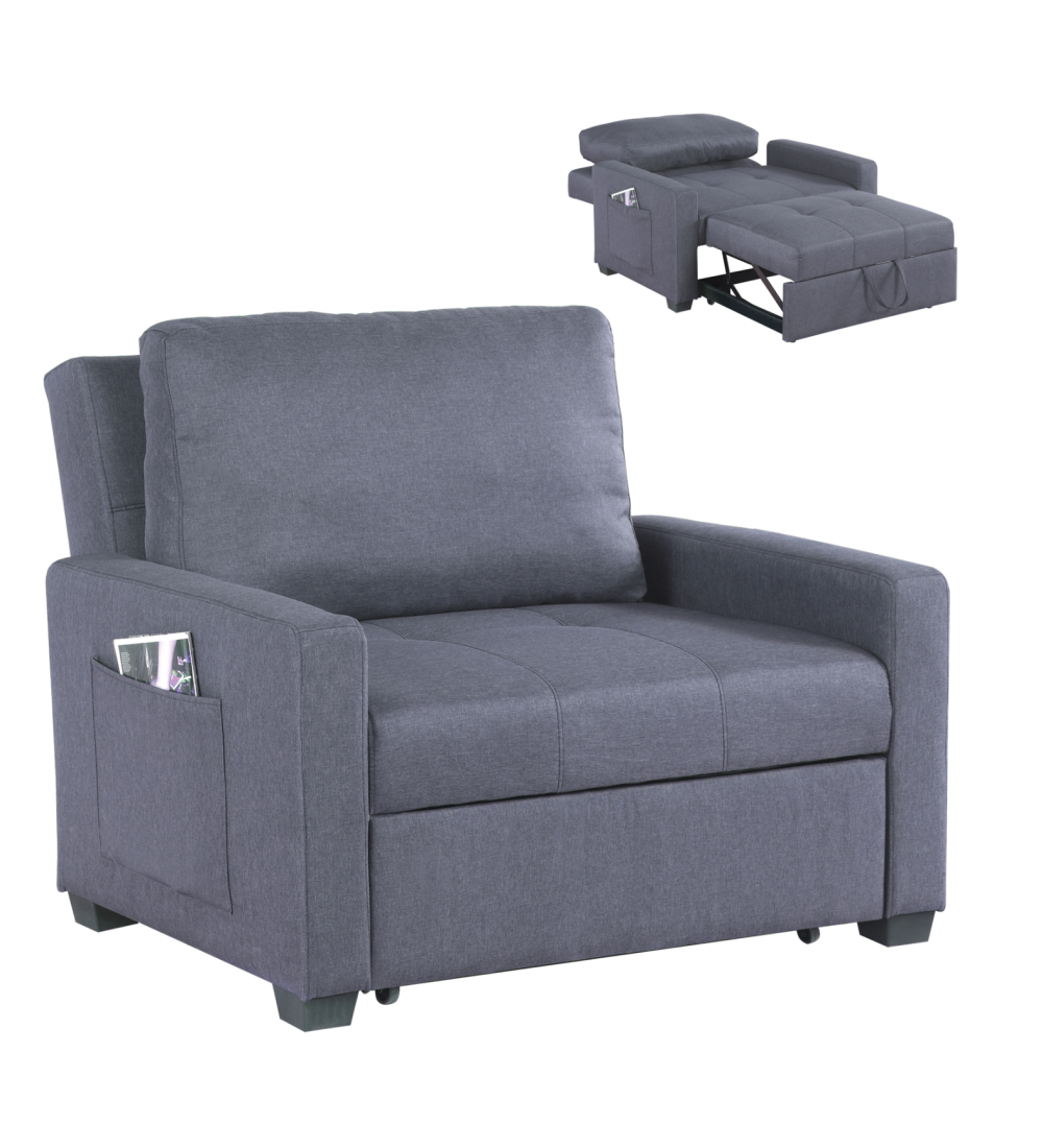 Πολυθρόνα / Κρεβάτι Ύφασμα Γκρι, πρόκειται για μια κοντή πολυθρόνα επενδυμένη με Γκρι ποιοτικό ύφασμα και