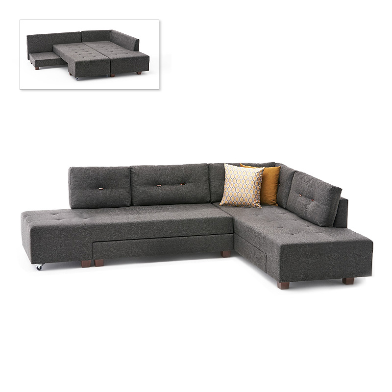 Γωνιακός καναπές-κρεβάτι δεξιά γωνία υφασμάτινος χρώμα ανθρακί 280x206x85εκ.