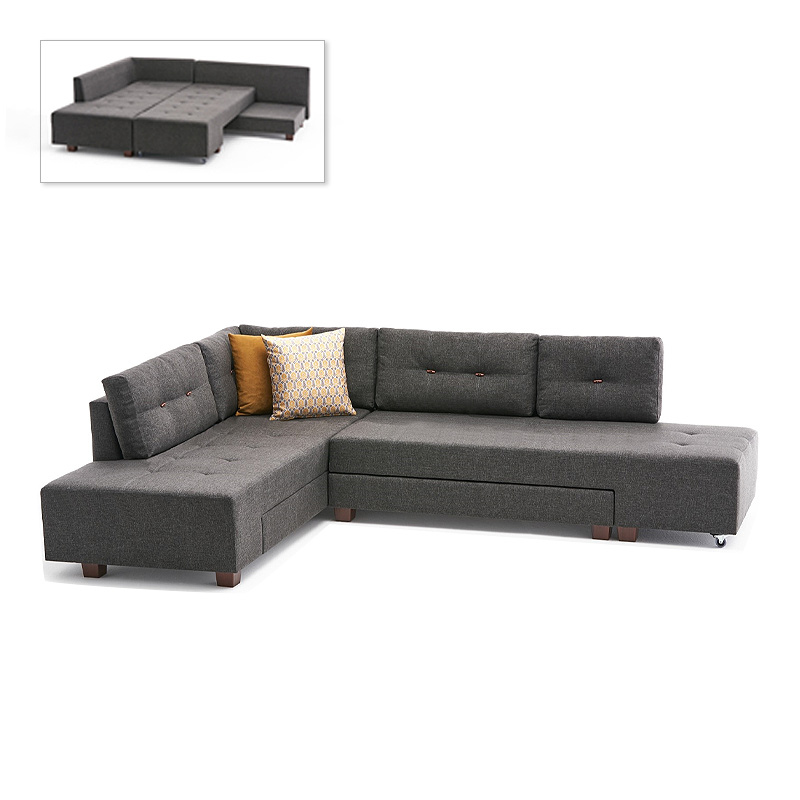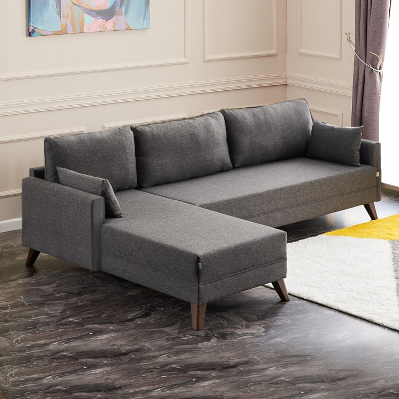Γωνιακός καναπές-κρεβάτι αριστερή γωνία υφασμάτινος χρώμα ανθρακί 280x206x85εκ.