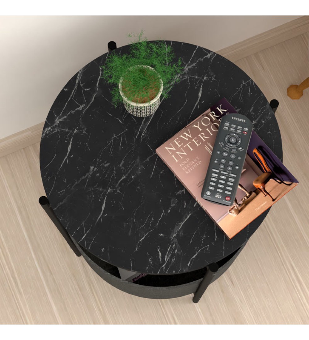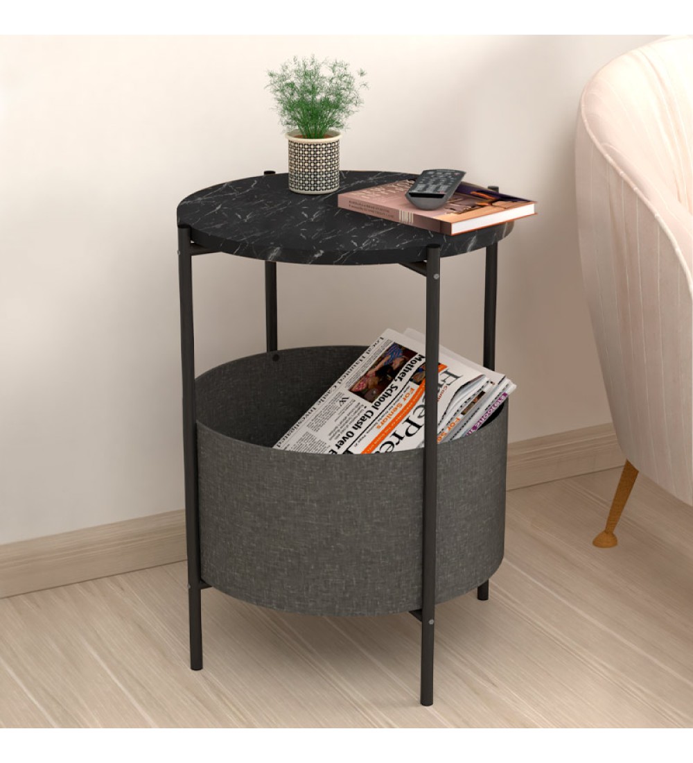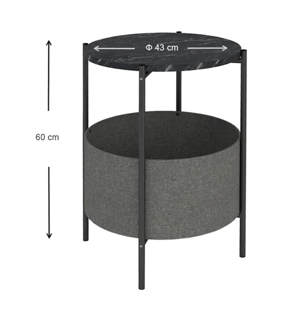 Τραπεζάκι Βοηθητικό υφασμάτινο χρώμα Μαύρο Εφέ Μαρμάρου- Γκρι