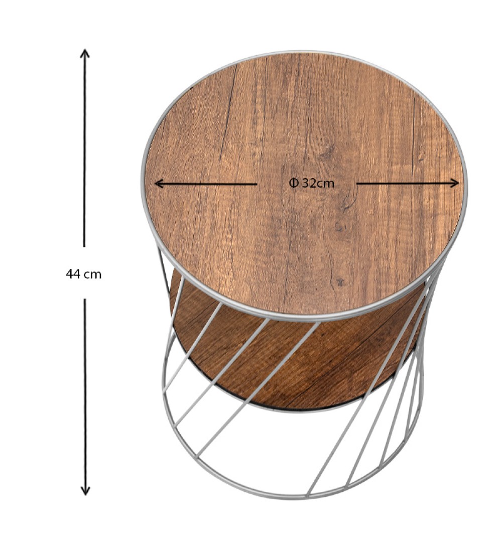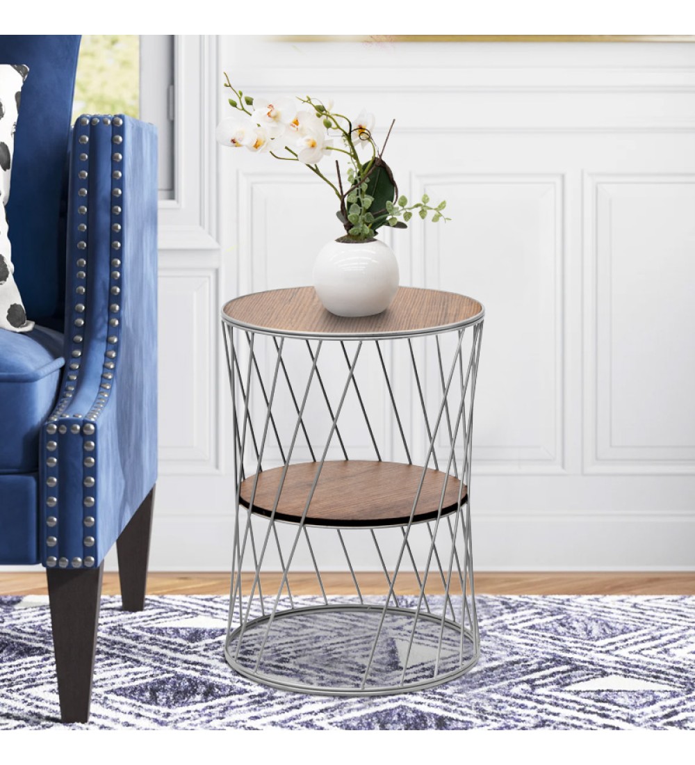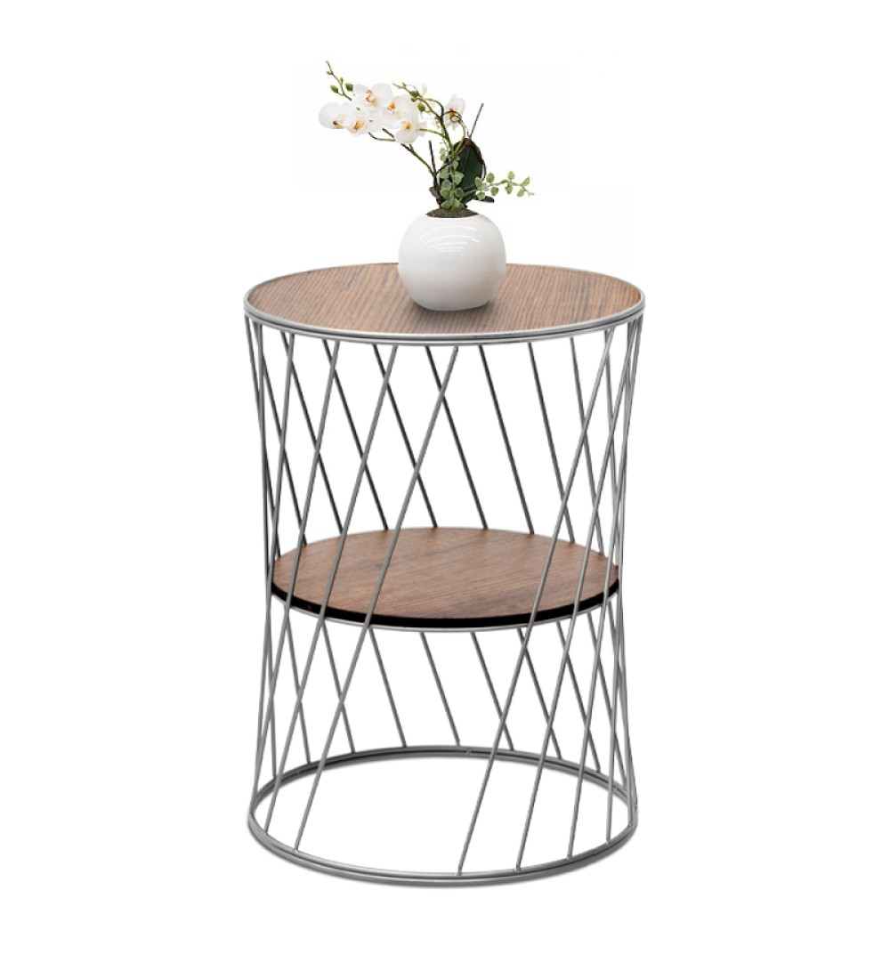 Βοηθητικό τραπεζάκι Μεταλλικό- Χρώμα Ασημί-Καρυδί
