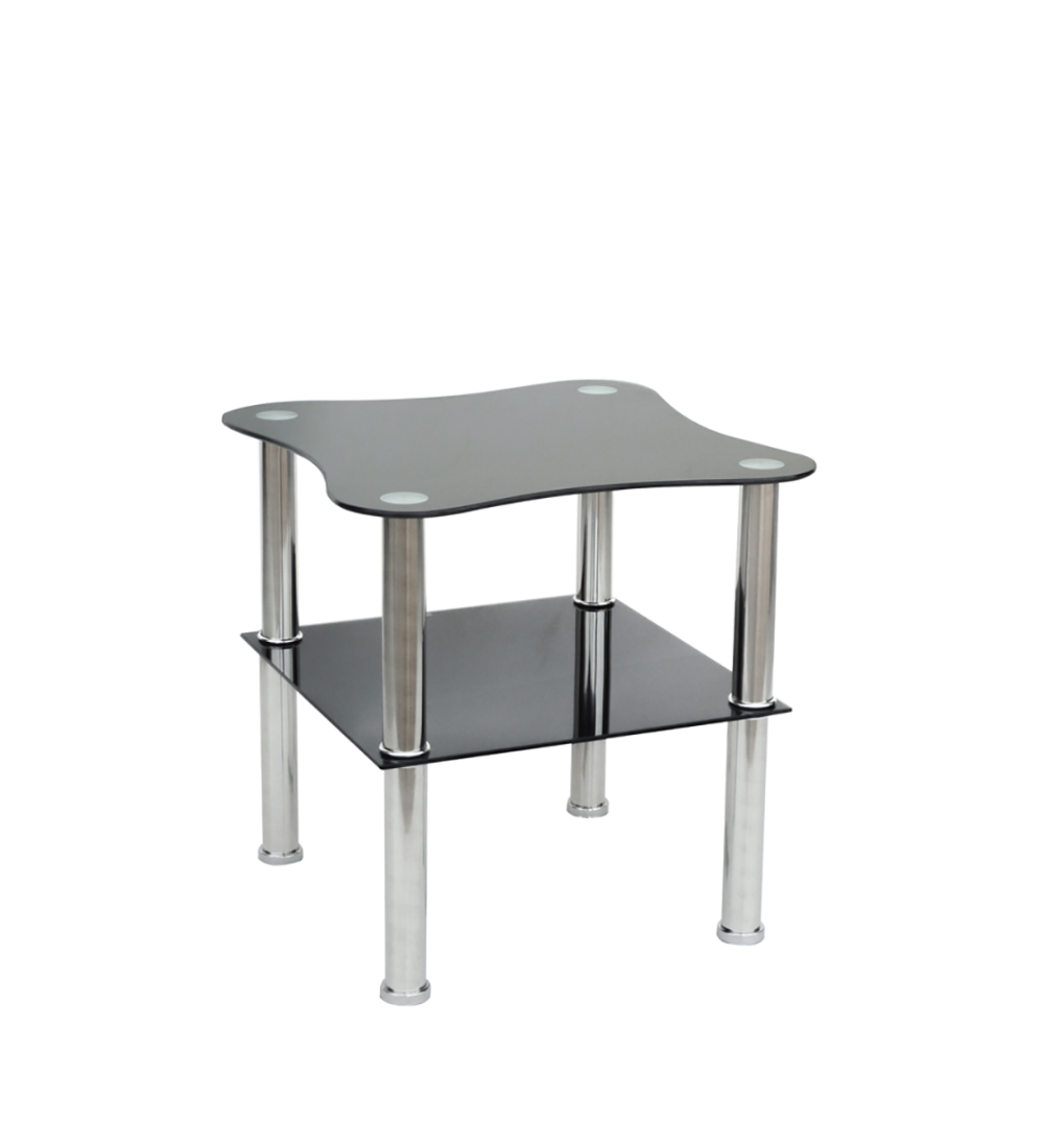 Τραπεζάκι βοηθητικό MALTA Μαύρο τζάμι πάνω και κάτω, ο σκελετό χρωμίου και σε διαστάσεις 45 x 45 x 46εκ.