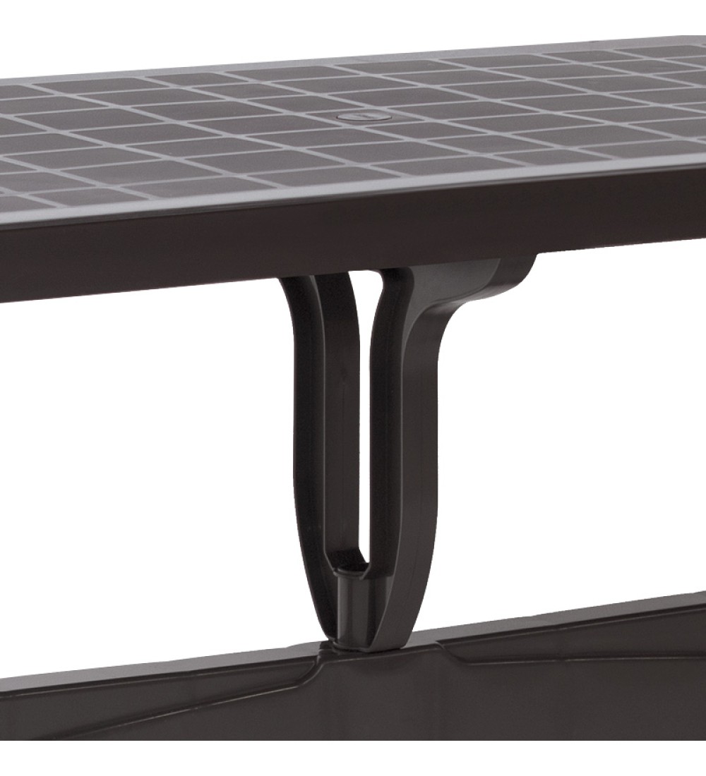 - Το τραπέζι διαθέτει ειδική θέση για ομπρέλα και ρεγουλατόρους στα πόδια.