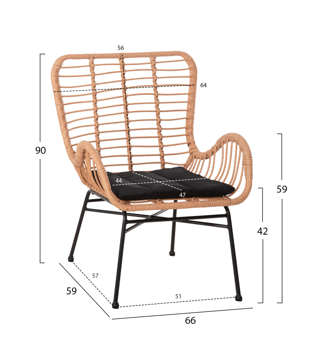 Πολυθρόνα Rattan σε Wicker - Σκελετός μεταλλίκος Μαύρος, είναι κατασκευασμένη με συνθ.Rattan σε wicker και ο σκελετός είναι Μαύρος μεταλλικός,