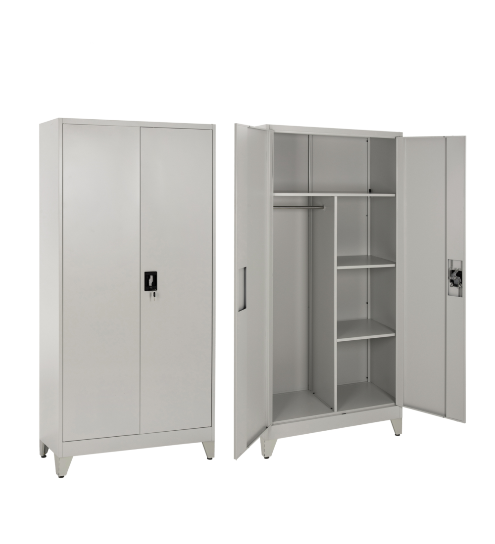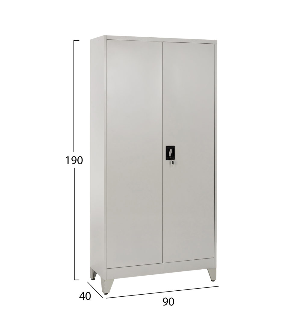 Mεταλλική ντουλάπα 90cm. Γκρι ανοικτό με πόδια με τις δύο πόρτες να κλείνουν ακριβώς στην μέση της κατασκευής,