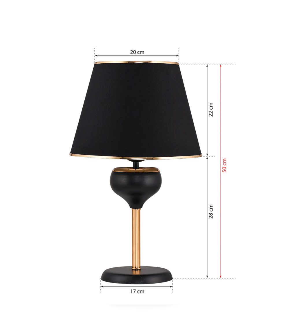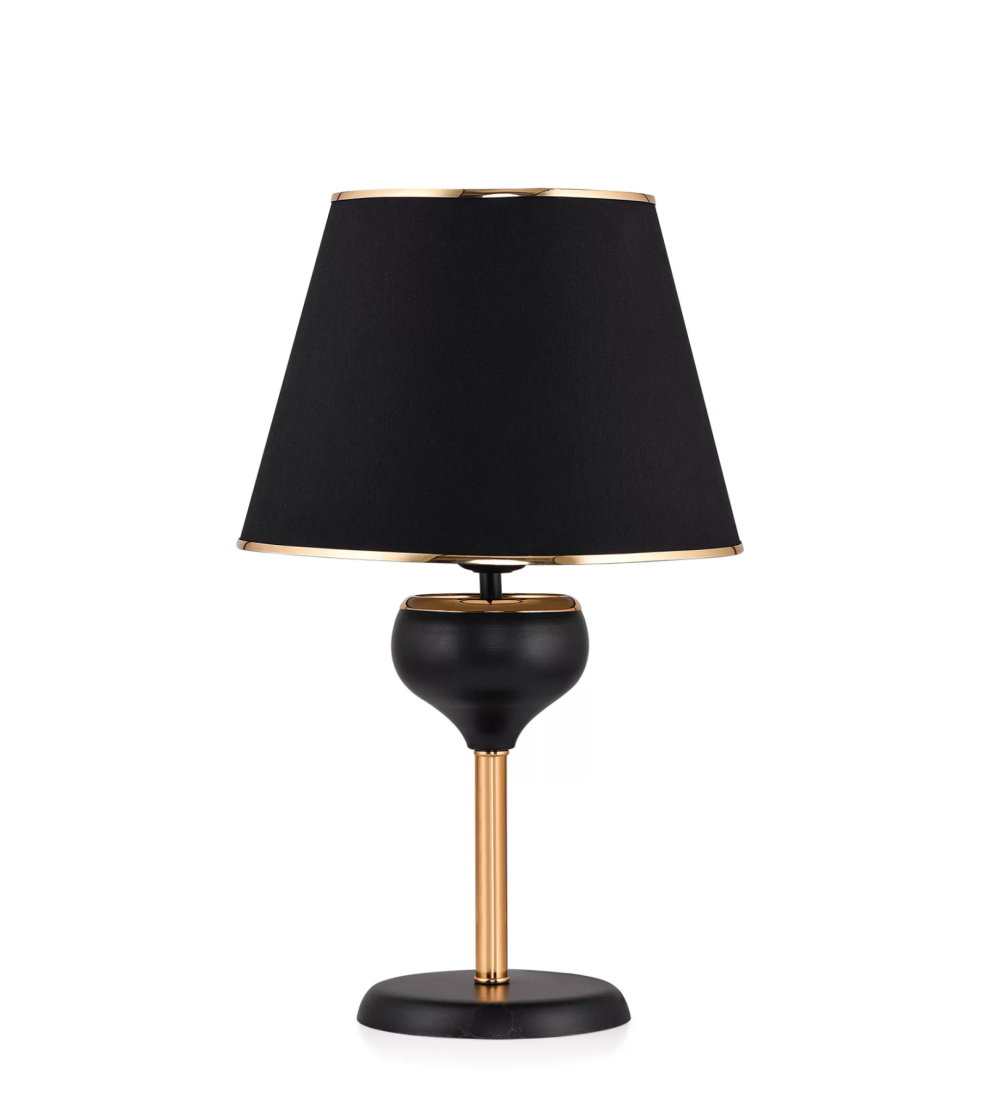 Φωτιστικό Επιτραπέζιο Χρυσό - Μαύρο ,το «καπέλο» του έχει σχήμα ανοιχτής καμπάνας (τραπεζοειδές) σε χρώμα Μαύρο,