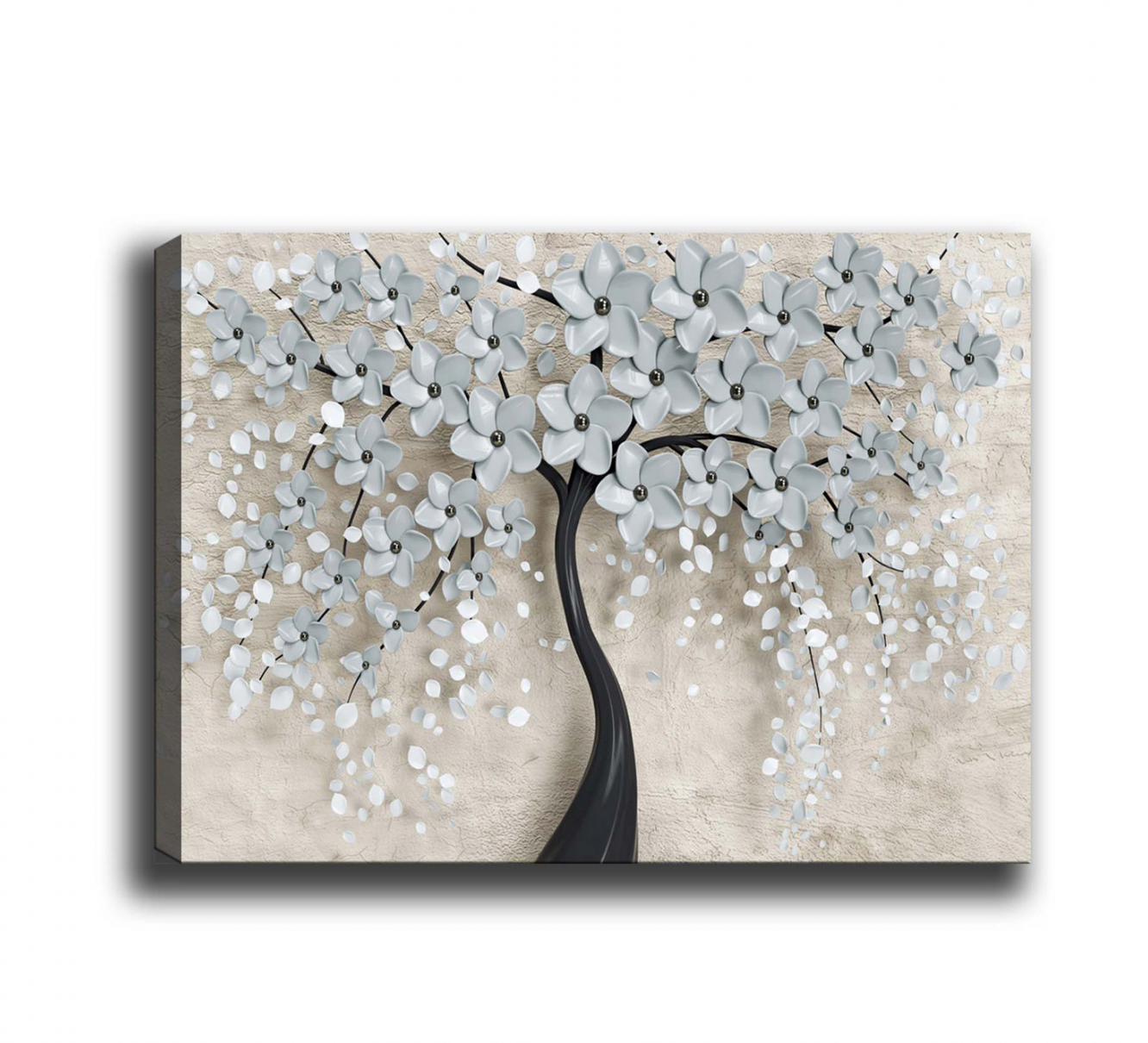 Πίνακας 70 x 100εκ. Blossom Tree σχέδιο σε γκρι/μπεζ απ...