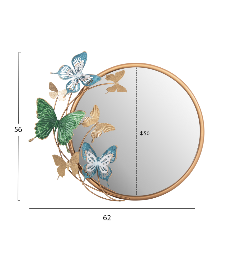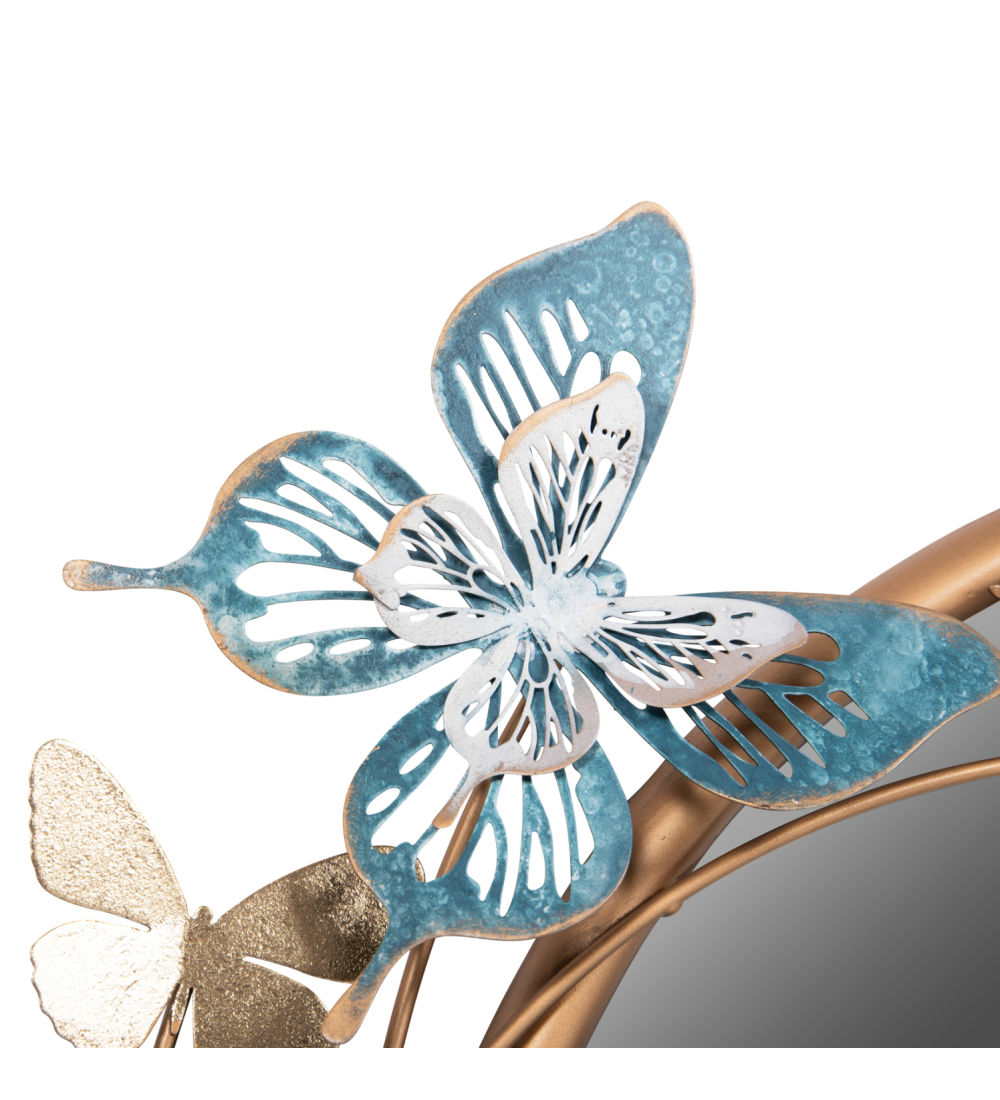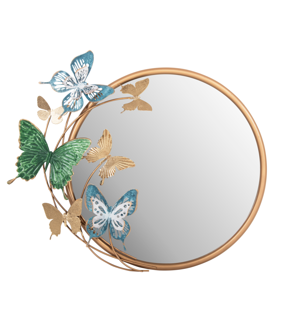 Καθρέπτης Τοίχου με Διακοσμητικές Πεταλούδες, στρογγυλός μεταλλικός καθρέπτης σε ΧΡΥΣΟ πλαίσιο και φιγούρες πεταλούδων