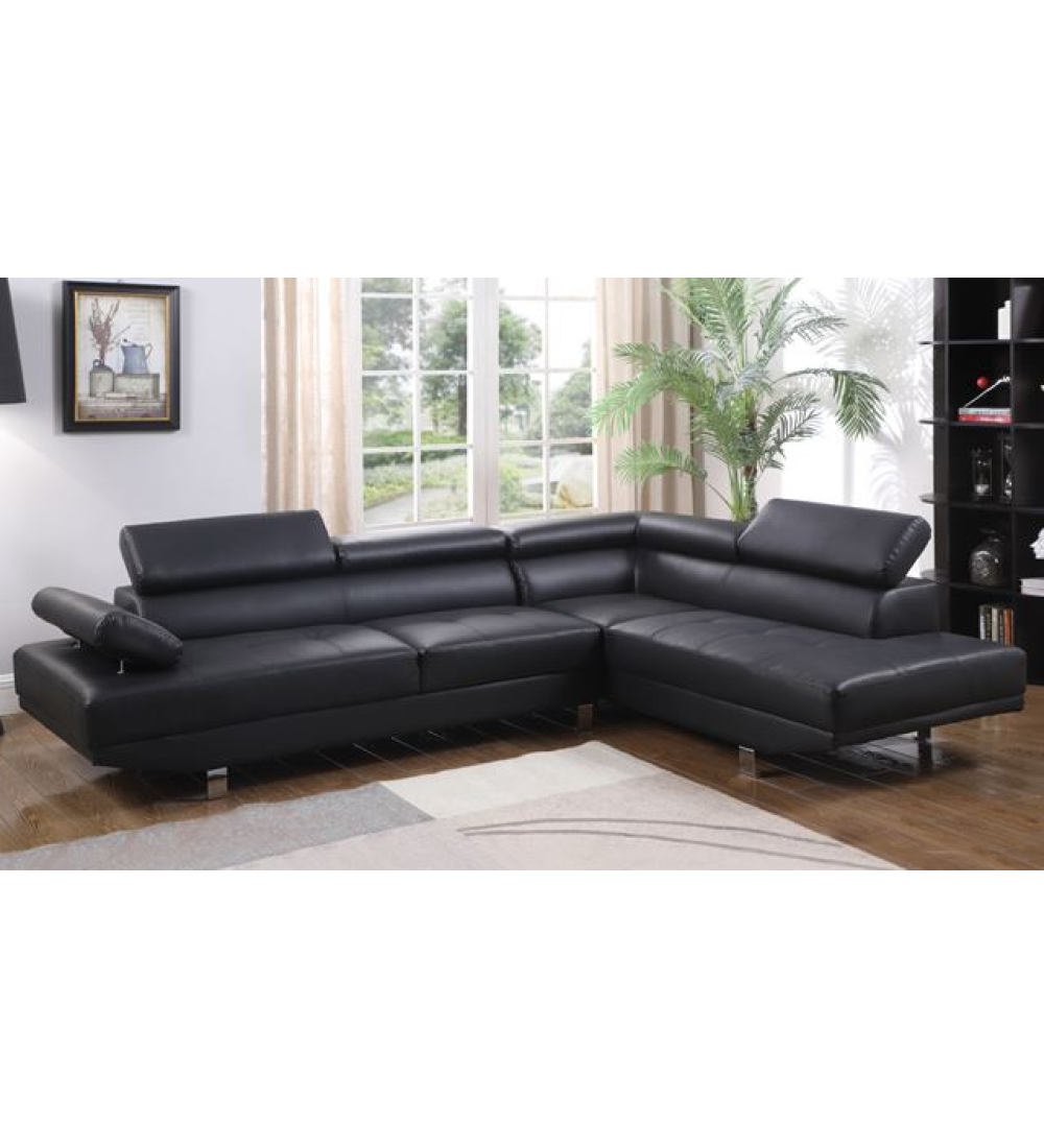 Καναπές Γωνία - Μαύρο PU δεξιά το ανάκλινδρο, με τεχνόδερμα σε μαύρη απόχρωση.