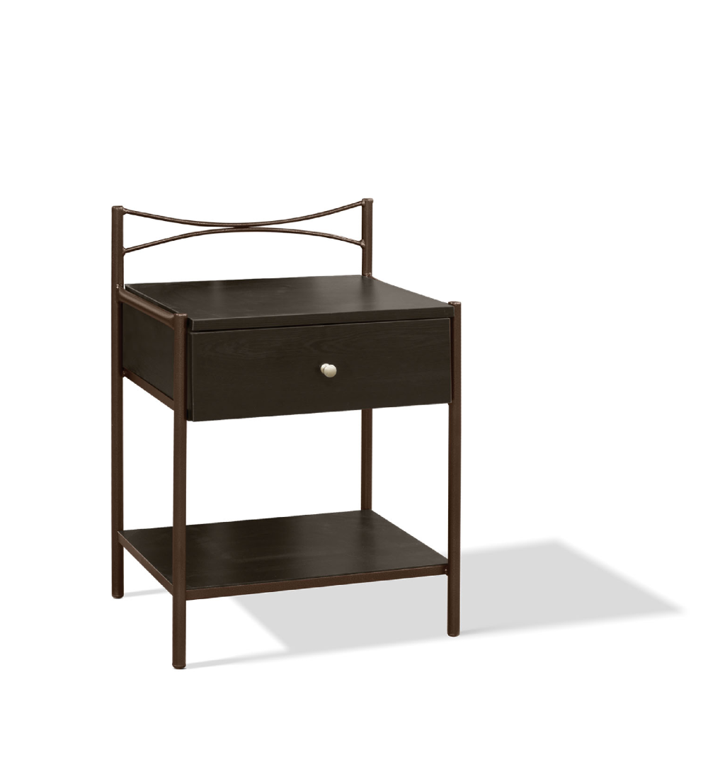Κομοδίνο Μεταλλικό Νο 1S (Ελληνικής παραγωγής) σε συνδυασμό ξύλο βέγγε απόχρωση και μέταλλο με 1.(ένα) συρτάρι,