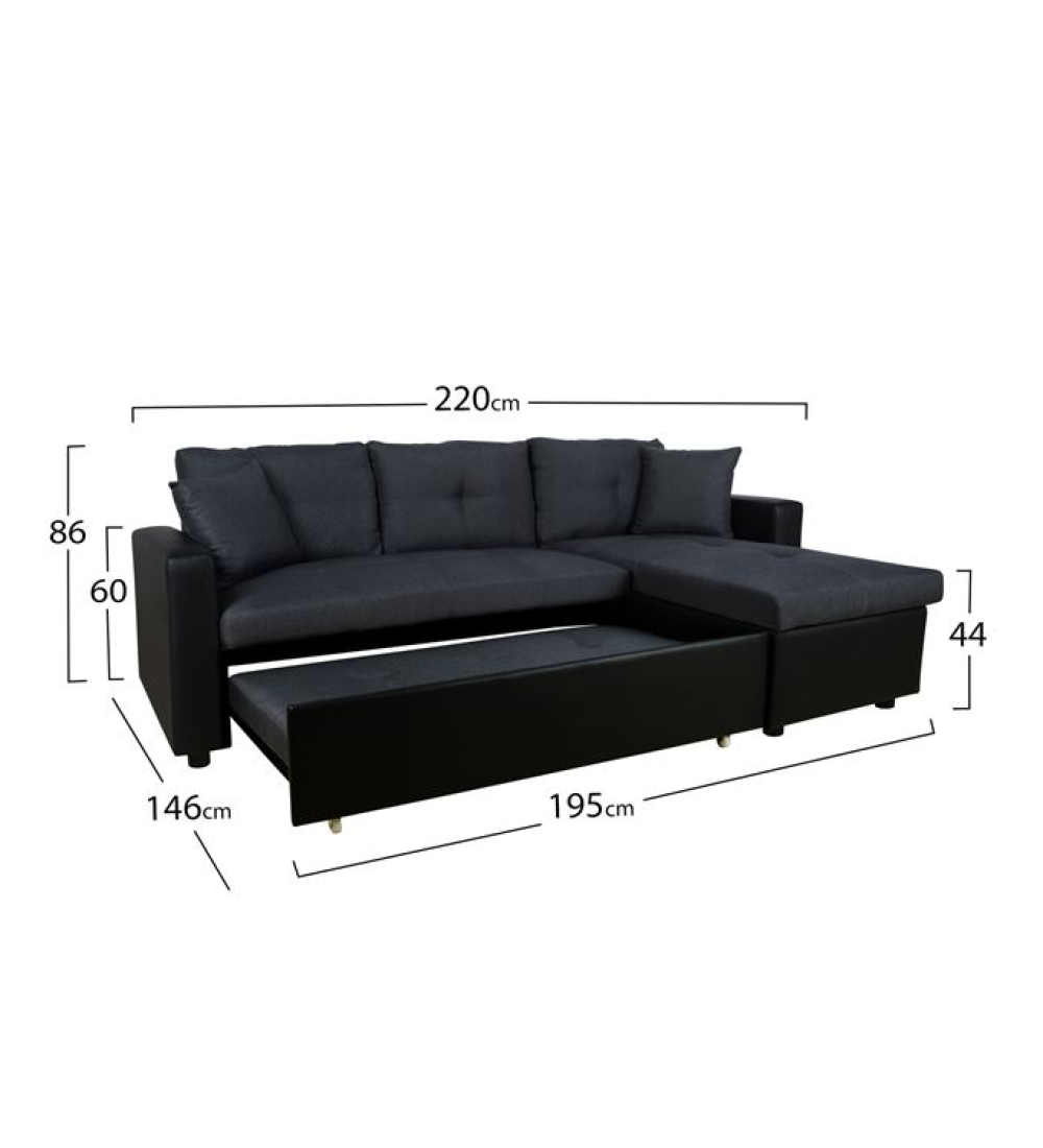 Διαστάσεις γωνίας: 220 x 146 (αναστρέψιμη, προσαρμόζεται δεξιά και αριστερά) x 86εκ.