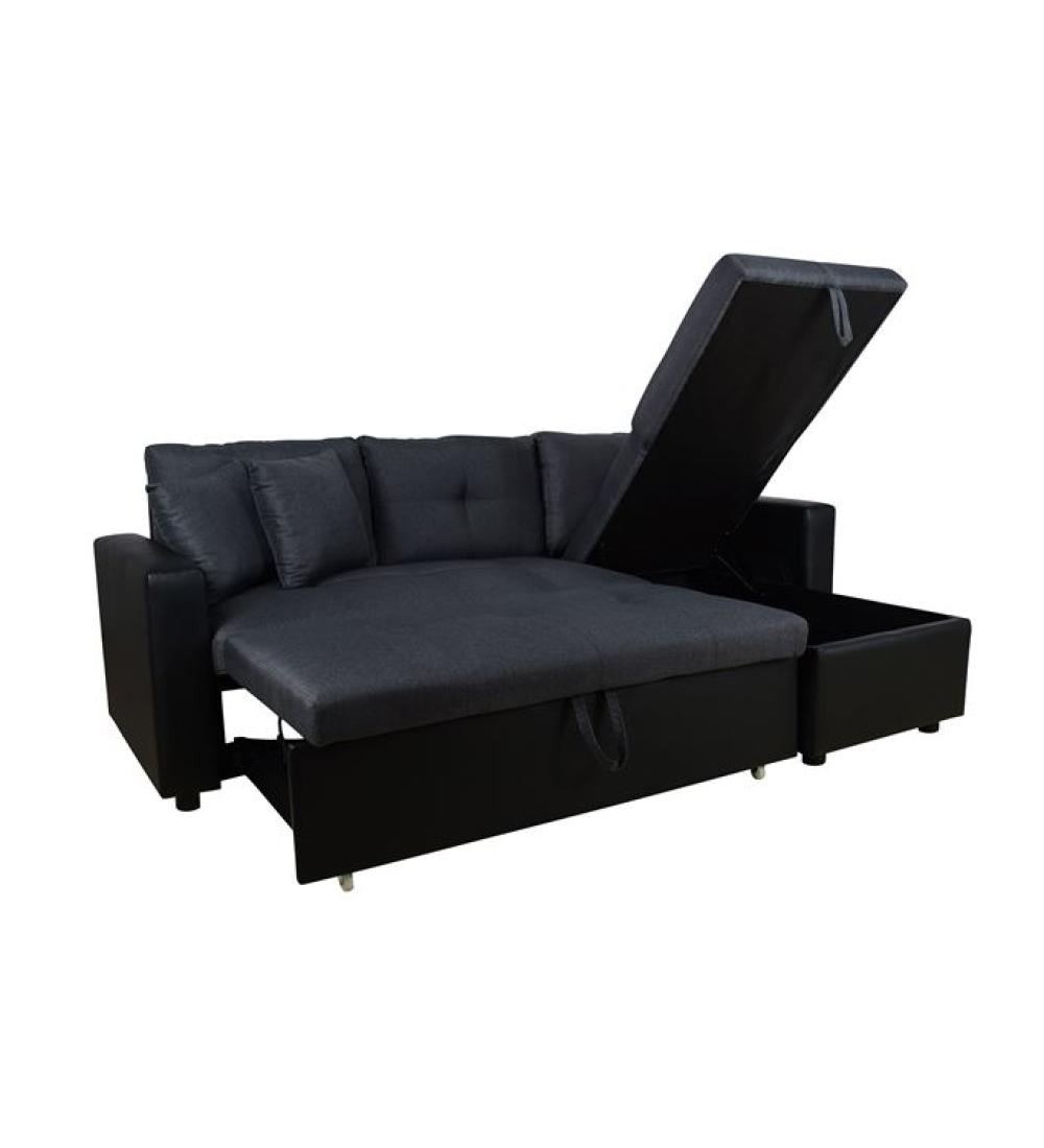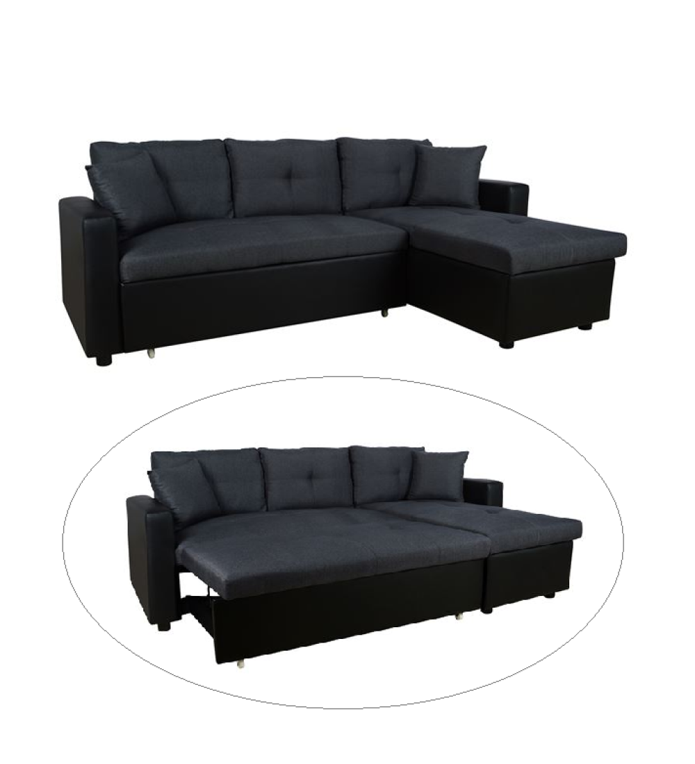Καναπές Γωνία / Κρεβάτι WAYNE Γκρι με Μαύρο PU / τεχνόδερμα υψηλής ποιότητας και