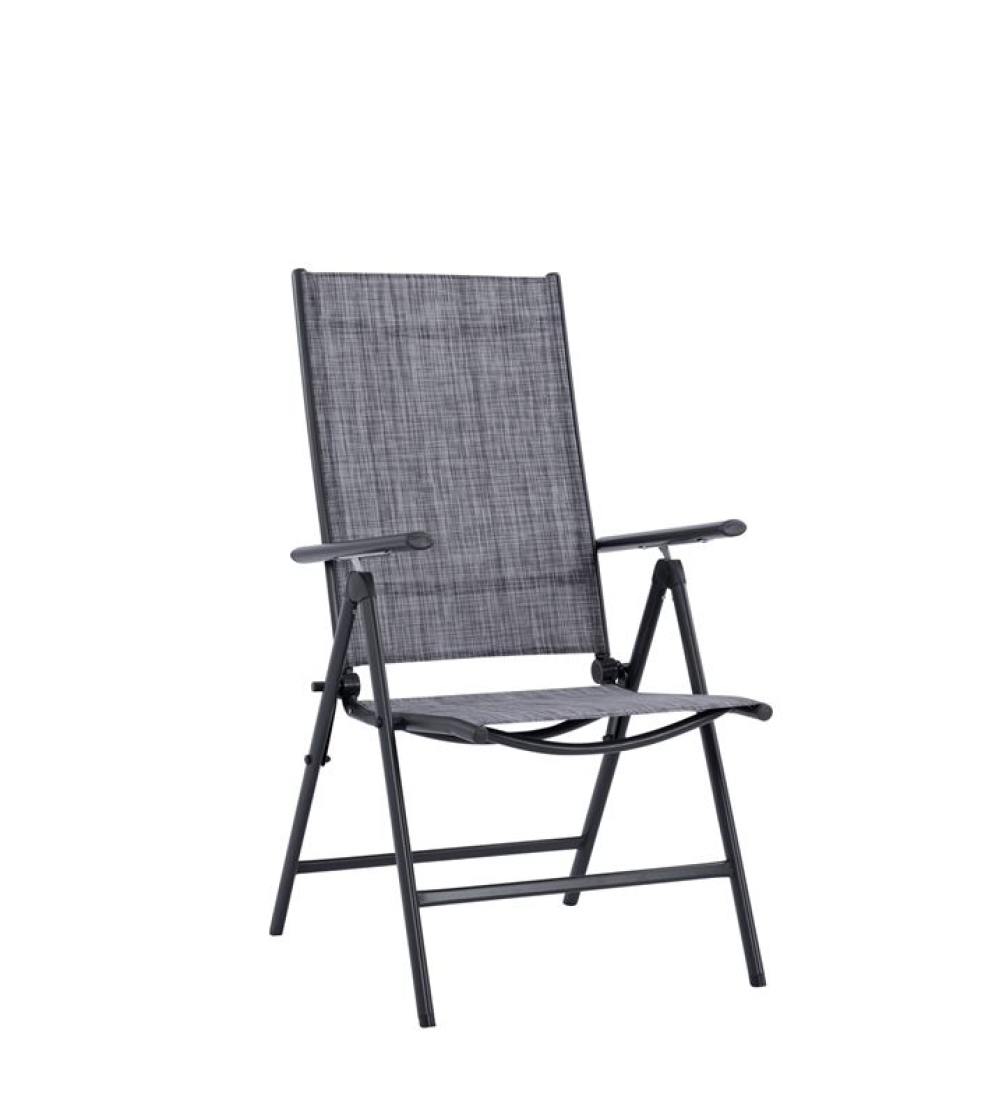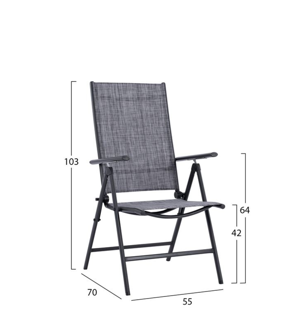 Καρέκλα πτυσσόμενη Γκρι απόχρωση, με μεταλλικό σκελετό και επενδυμένο με textilene σε γκρί απόχρωση.