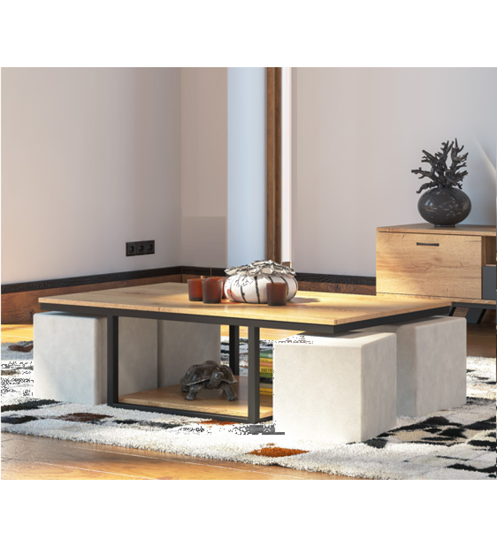Τραπεζάκι Σαλονιού Φυσικό με Σκαμπώ 4.(τέσσερα) τεμάχια σε Εκρού ύφασμα τα οποία τοποθετούνται