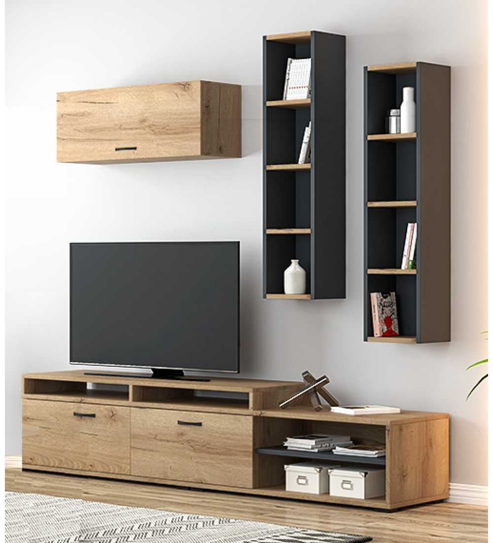 1. (ένα) έπιπλο Φυσικό/Μελί διαθέτει 2.(δύο) ντουλάπια και κενό με 1.ένα ράφι σε Γκρι χρώμα,