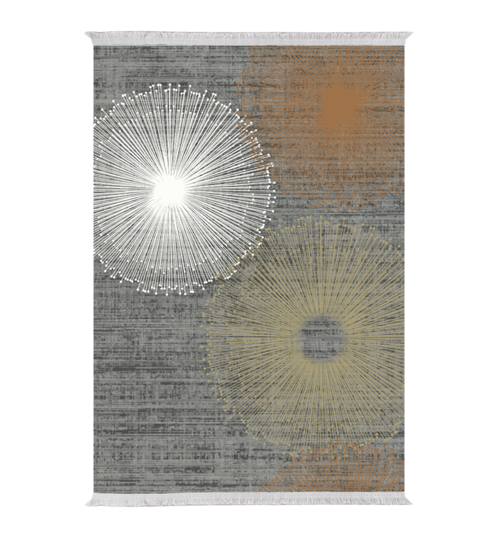Χαλί Σαλονιού αυτό το χαλί απεικονίζει πολύχρωμα κυκλικά σχέδια σε ΓΚΡΙ φόντο.