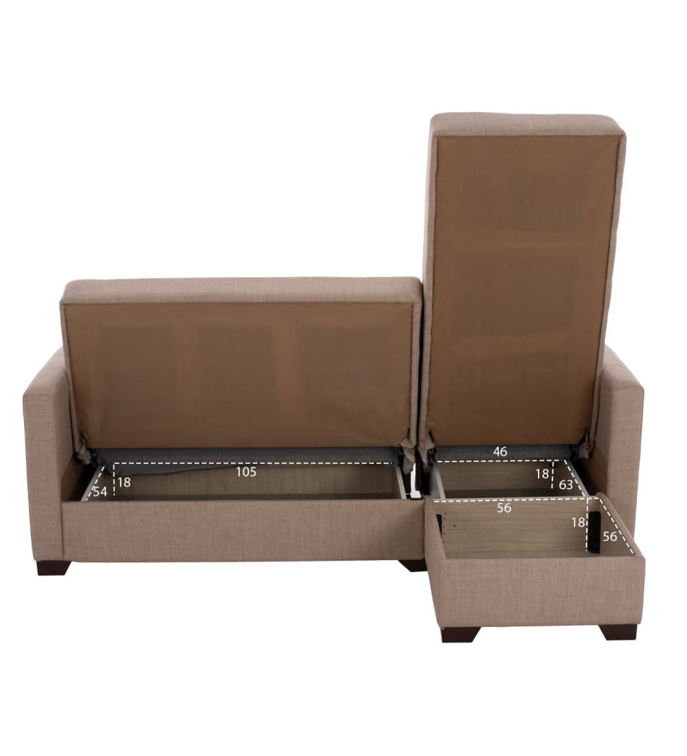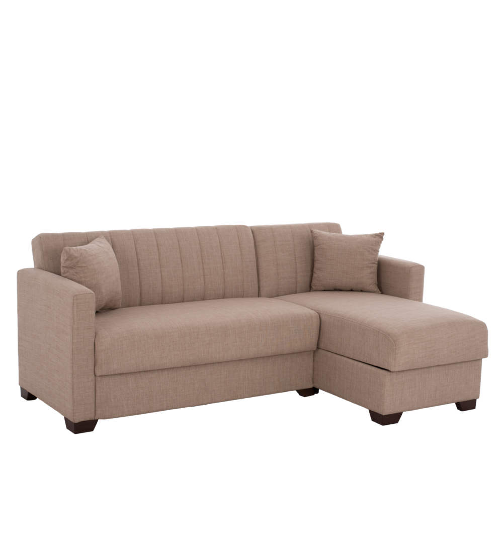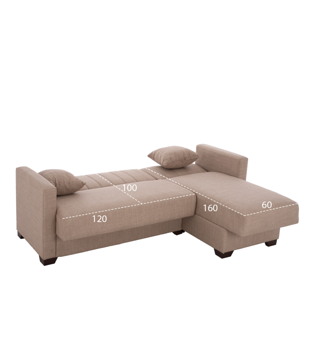 Καναπές Γωνία / Κρεβάτι Μπεζ σε απόχρωση και με αποθηκευτικό χώρο, είναι ένας βολικός και πρακτικός γωνιακός καναπές.