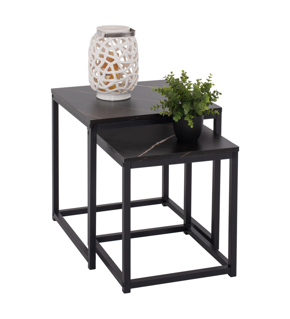 Τραπεζάκια Σετ Ζιγκόν Μαύρο Μάρμαρο Εφε θα σας ενθουσιάσουν με το στυλ και την πρακτικότητά τους. Πρόκειται για 2(δύο) τετράγωνα τραπεζάκια, το