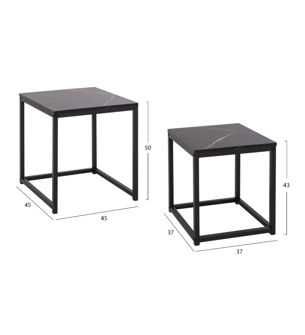 είναι μεταλλικά σε μαύρο χρώμα, ενώ οι επιφάνειές τους είναι σε εφέ Μαύρου Μαρμάρου από MDF.