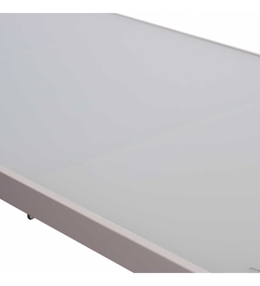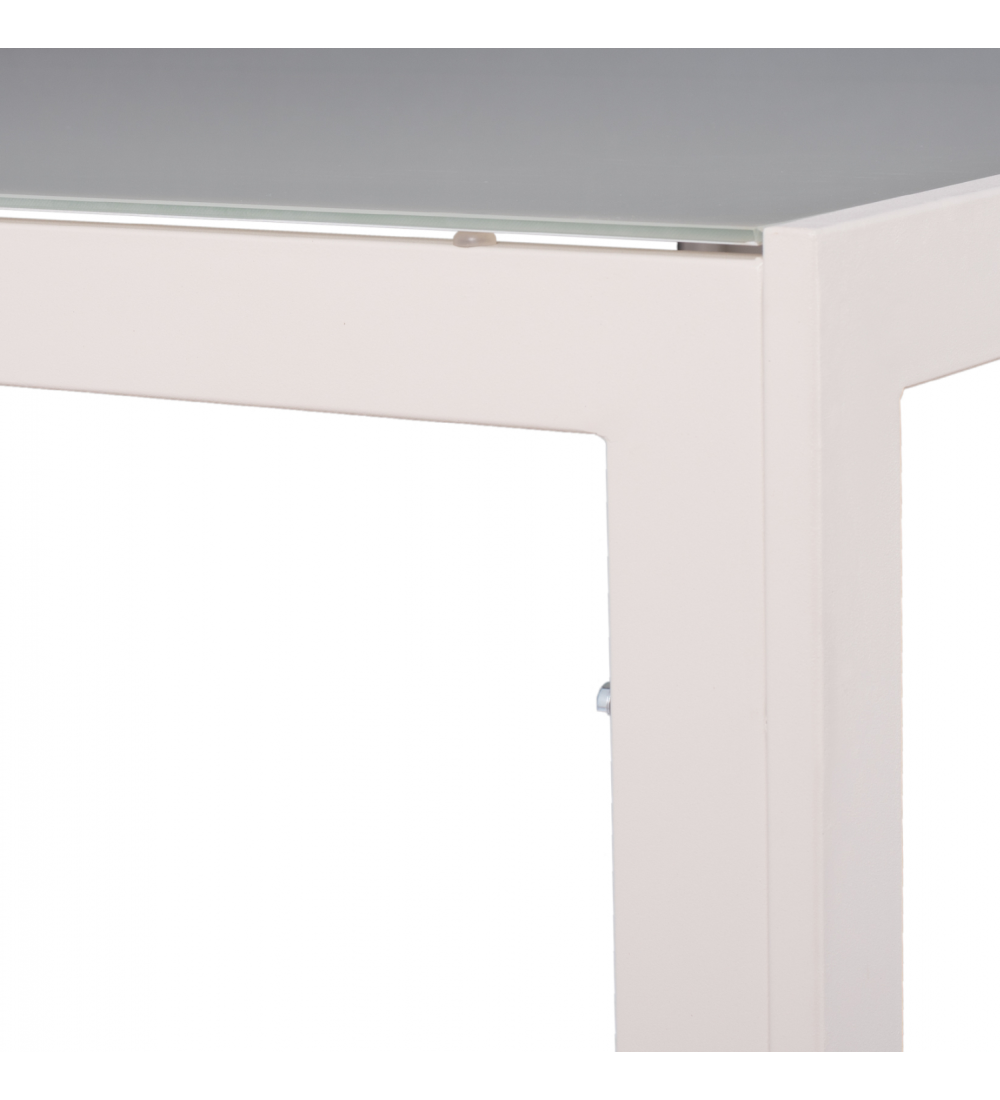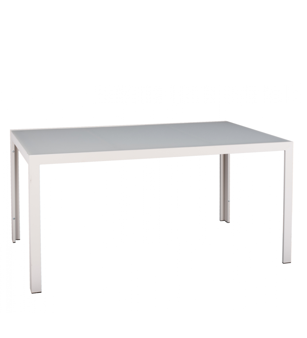 Τραπέζι Μεταλλικό 1,50εκ. Λευκό με Τζάμι, εξωτερικού χώρου σε Λευκή του Πάγου απόχρωση με γυαλί στην επιφάνειά του.