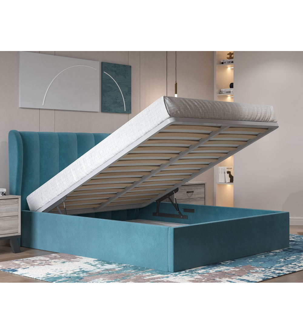 Κρεβάτι με Αποθηκευτικό Τυρκουάζ Νο 182 (Ελληνικής κατασκευής) είναι σχεδιασμένο και ντυμένο όλο με ύφασμα