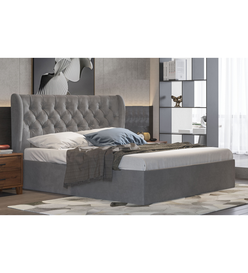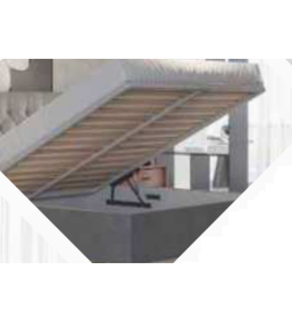 Κρεβάτι με Αποθηκευτικό Γκρι Καπιτονέ ύφασμα Νο 186 (Ελληνικής κατασκευής) είναι σχεδιασμένο με καπιτονέ κεφαλάρι
