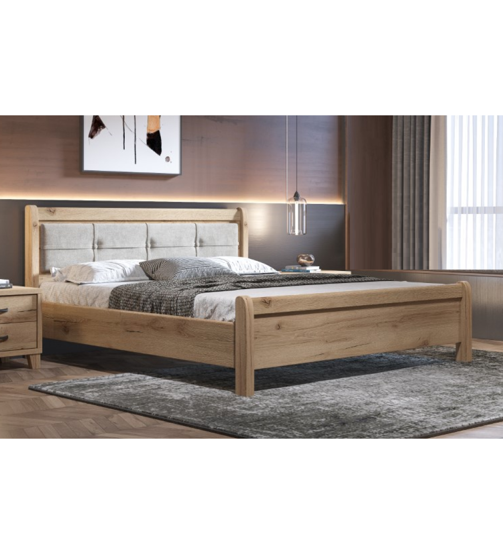 Κρεβάτι Διπλό Ξύλινο Νο160 Μελί συνδυάζει το ξύλο με το Ύφασμα στο κεφαλάρι σε Εκρου απόχρωση.